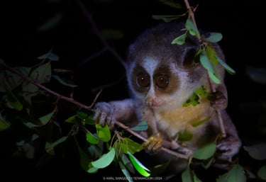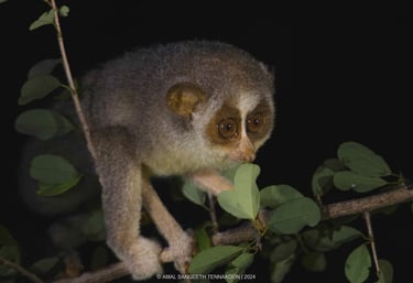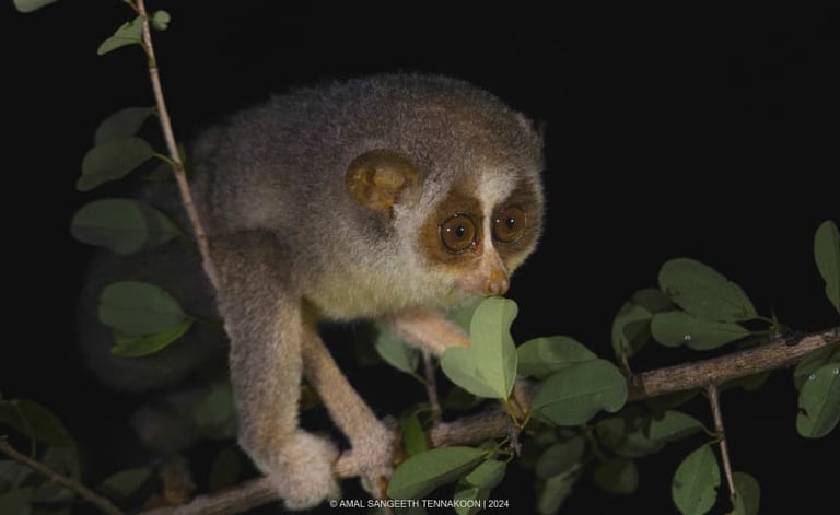 Loris: The grey slender loris, a small, slow-moving primate with large eyes, is a fascinating creature to behold.